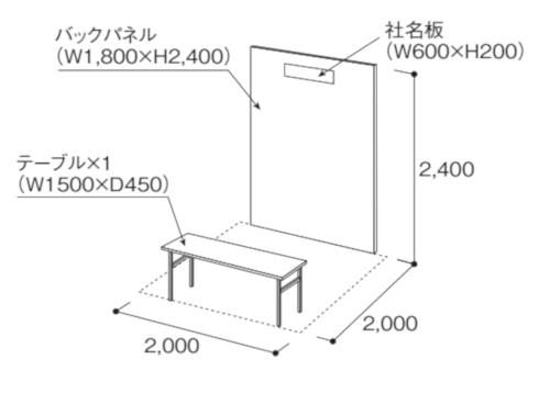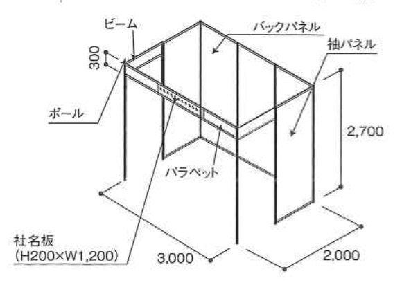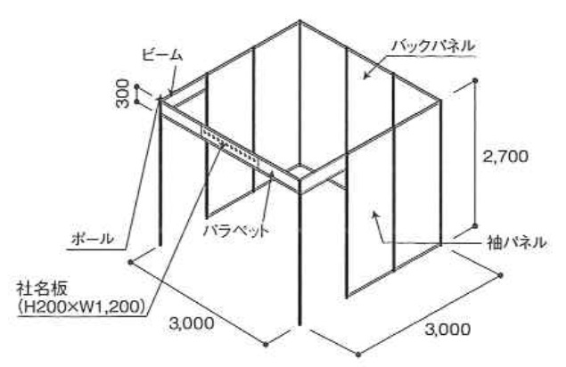 ※小間料金にはバックパネル、袖パネル、パラペット、社名版が含まれます